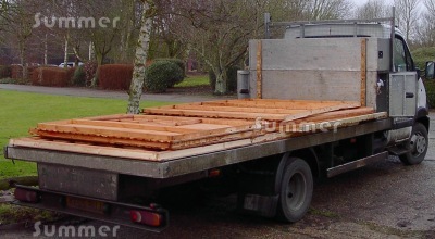 PICTURE: A smaller flatbed lorry with the panels laid flat. It normally carries around 4-6 timber buildings.