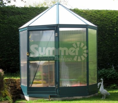 I am therefore highly delighted to find yours is a high quality product and when built; it is a strong and stable construction. The design is ideal for small garden corners such as mine and much more decorative than the conventional g/hse design.
