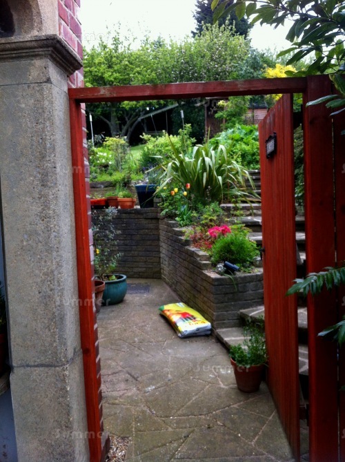 - The picture below shows a narrow gate and passageway through which large panels can be carried.