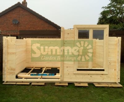 Pictures 1, 2, 3 and 4 show the 4.0x3.0m log cabin with an additional double opening side window. Picture 5 shows a close up view of the doors. Picture 6 shows a close up view of the windows (the windows provided with the cabin are bigger than the ones shown in this close up photo). The videos show a number of the features of our log cabins - please note, some details may differ between buildings.