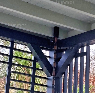 Many, many thanks for the downpipes that arrived at lunchtime. Lovely quality as is the Gazebo. All installed to feed one of our new water butt ( we have 13) and an overflow tap installed to divert the 3xcess into a land drain...which is why the gazebo leg has had to be set so far in from the end. Again our thanks.
