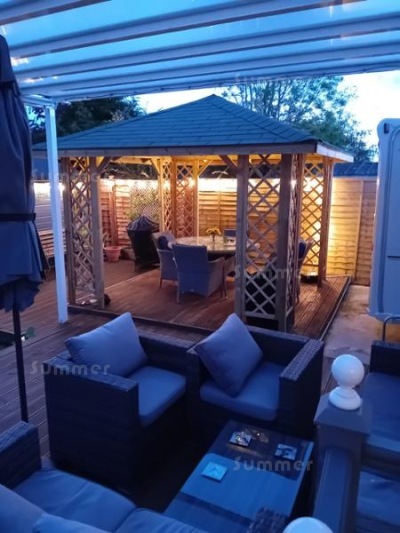 Recently received your garden gazebo and we would like to say how delighted we are with it. Speedy delivery everything needed to erect promptly. Neat design and good price what more could we ask.