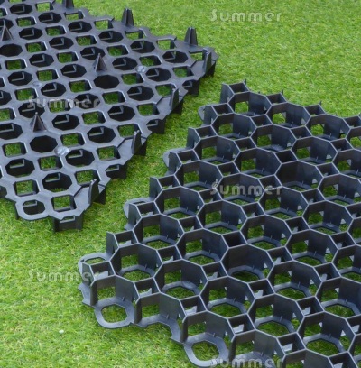 Eco-grids are recommended if the sub-base is soil, sand or pea shingle but not on hard surfaces such as concrete, because the underside is not flat. Integral pegs on the underside help to level the base grids more easily in soil or sand or shingle. Our eco-grid plastic bases can support up to 150 tonnes per square metre. We offer exactly the same eco-grids as driveways and carparks. Each eco-grid is 472mm x 472mm and 40mm thick with an immensely strong 60x60mm hexagonal cell structure. The kits include weed control membrane which is laid below the pavers. Extensive preparation is not normally required. First the ground is levelled and then the membrane is laid directly on the soil. The pavers are laid on the membrane or on a thin layer of sand or pea shingle. The pavers should be backfilled with gravel or pea shingle which is not supplied. Approximately 15-20kg of shingle is required per paver. We recommend checking this with your supplier or, if you can, buy less gravel than you need to start with.
