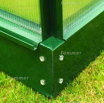 The powder coated finish of our coloured aluminium greenhouses is more attractive than the stark silver colour of mill finish aluminium greenhouses. The tough finish also has excellent weathering properties and retains its gloss and colour well. A good example of powder coating is the finish on your washing machine. Powder coated aluminium greenhouses have a similar finish.