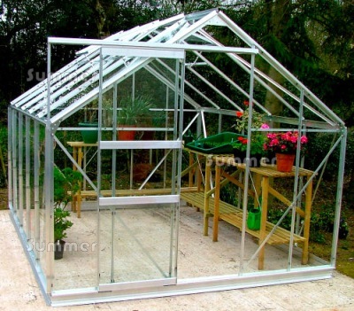 PICTURE: An 8'x10' (2.4x3m) mill finish aluminium greenhouse with horticultural glass.