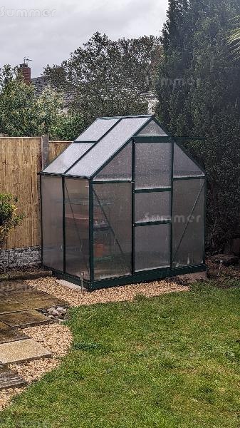 THIS POLYCARBONATE GREENHOUSE: These great value metal greenhouses feature green powder coated aluminium frames with durable twinwall polycarbonate glazing, which is normally an expensive extra. These sensationally cheap greenhouses are always in stock and the price includes fast delivery. From a technical viewpoint this greenhouse is heavier and more rigid than others at similar prices and the glazing is held in better. The precise manufacturing and careful packing is a match for our most expensive greenhouses. Sophisticated features include well retained clip free glazing, additional bracing and numerous specially designed brackets and clips to improve the strength. With such a competitive price this metal greenhouse is a popular choice with first time buyers. With the ultra safe polycarbonate glazing it is also a popular choice for the elderly and families with children or pets.