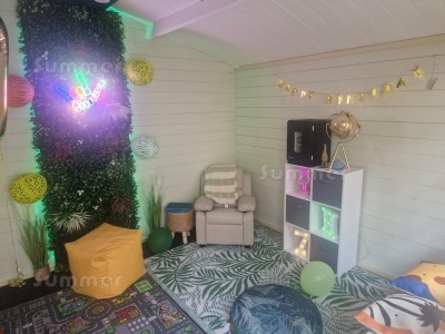 Based on average coverage five litres of our 4 star preservative is enough for two coats on an 8'x10' shed or an 8'x8' log cabin. Ten litres is enough for three coats on a 10'x16' shed or a 12'x10' log cabin. Coverage varies according to the smoothness of the surface and the porosity of the timber. We recommend that you order more than you need to be sure that you have easily enough. All of these preservatives are safe for use with children and pets. These microporous preservatives are only available when you purchase a Summer garden building or if you purchased a Summer building in the past. Prices include free mainland delivery to England, Wales and southern Scotland. Colours are only as accurate as reproductive techniques allow.