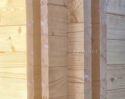 FULLY INTERLOCKING LOG CORNERS: These traditionally made log cabins feature interlocking corner logs. Each wall log is precisely machined and notched out to ensure a strong and weatherproof joint. The first log is laid at the bottom and the rest slot into each other, working upwards one log at a time. No screws or nails are required which makes installation easier and also allows for timber movement. The finished corner assembly is not only immensely strong but also weatherproof and draughtproof. If possible cabins with interlocking logs should be treated after assembly. Treating the logs on site before fitting requires considerable care. If swollen the precision milled joints may not slot together.
